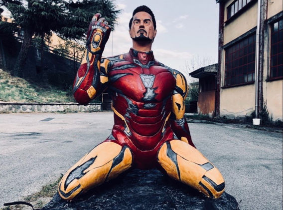 l'opera è stata scolpita interamente a mano per poi essere stata tagliata, cotta, riassemblata e dipinta, l'opera è rappresentata nella posa del film avengers end game.